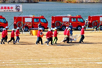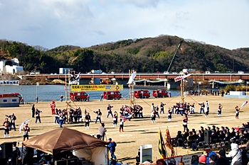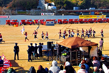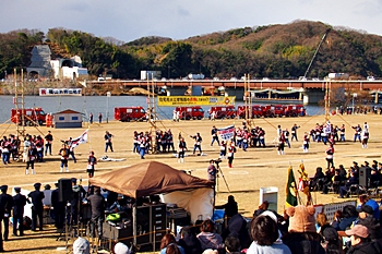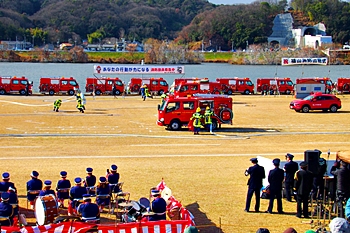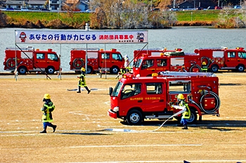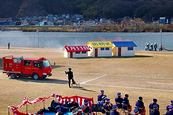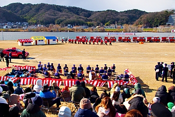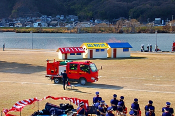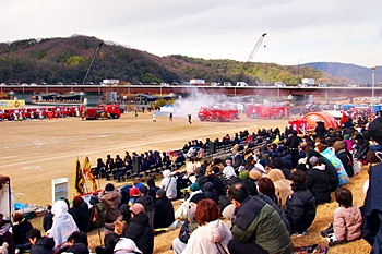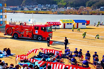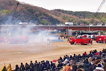 木遣#笘Iが無事に終わりますと、続いて公開訓練「総合防災訓練」≠ナす。