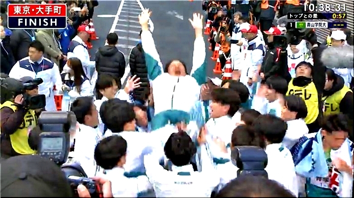 ゴール地点に集まっている帝京大の選手たちは、「テレビが間違ってる」事は知っており、いぶかしげな表情で待機していましたとは…その様子を想像しますと、チョッと笑ってしまいましたネ(^.-)☆