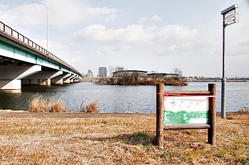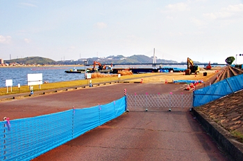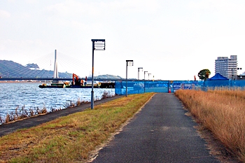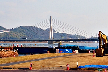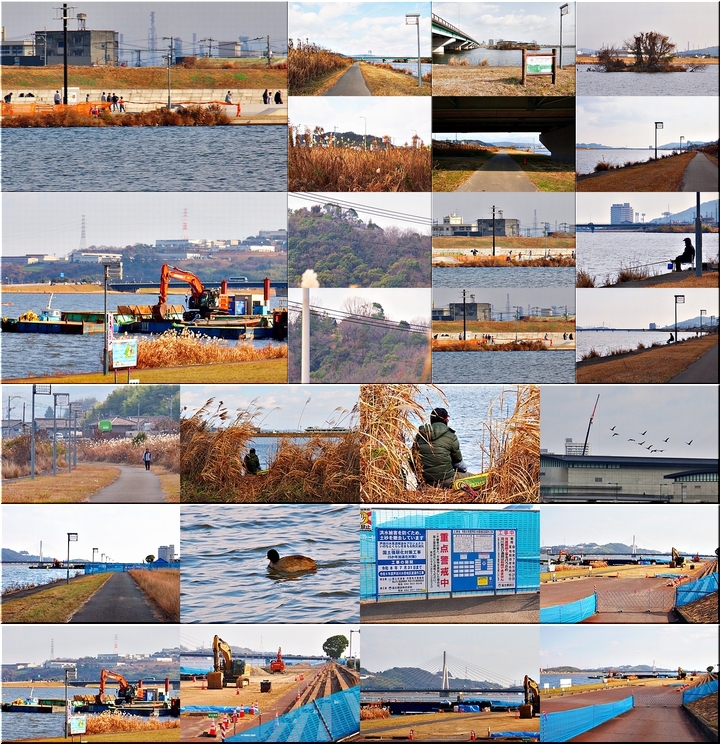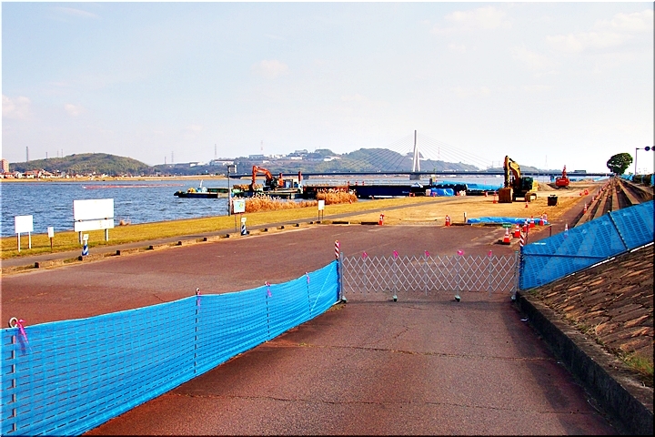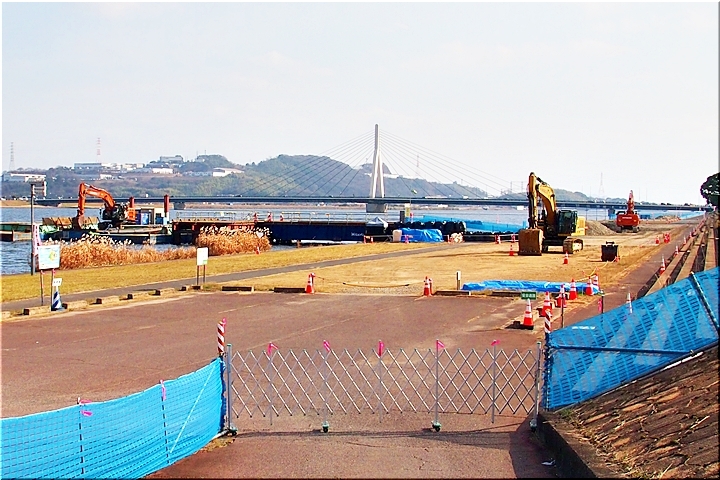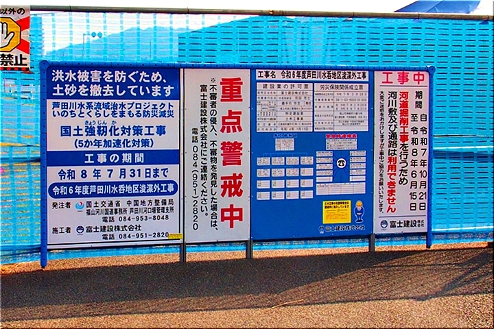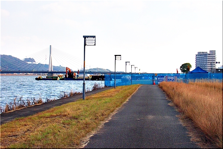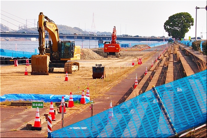 閑散とした、この現場も何枚かパチリ。この工事は、今年の6月まで続きますから、芦田川両岸の河川敷をジョギング・マラソン・ウォーキングのホームコースとしておられます方々には、もぅ半年ばかりご不便ですネ。