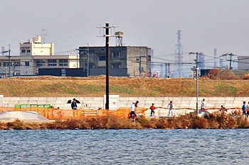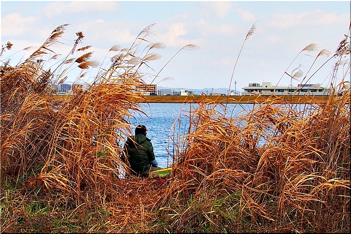 河川敷に下りますと、さほど冷たさは感じませんでしたけど、時折り川上から川下方向へ強風が…ですから、往路はキツいけど復路は楽なウォーキングであります。