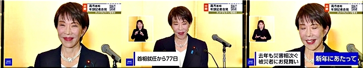 新しい年を迎え、ノンビリとテレビに眼を向けておりますと、高市早苗首相の年頭の記者会見の様子が映し出されました(^.-)☆