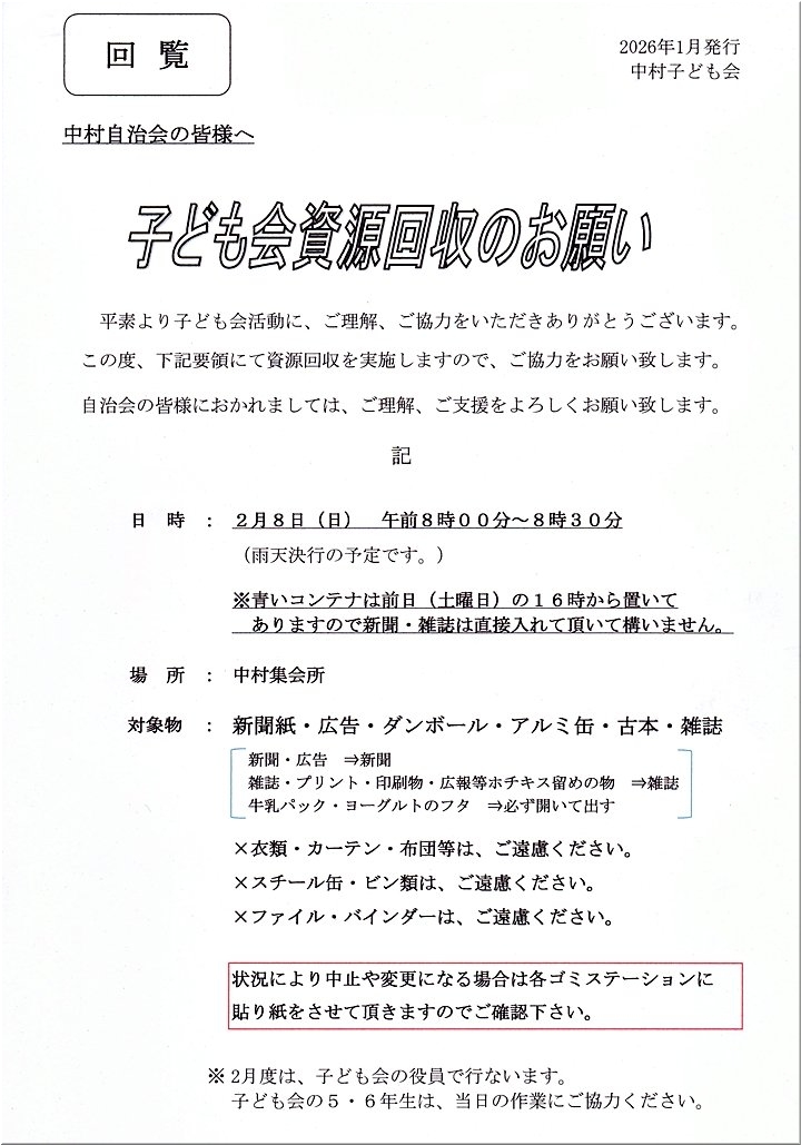 まず、子ども会資源回収≠ナす。あまり頻繁に実施されますと、出すモノに困ってしまいますけど、我が家が協力出来ますのは、毎回可能なモノとしましたら、新聞∞広告∞雑誌≠ュらいでしょうか…