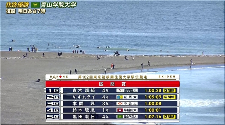 まぁ大会運営の裏側では、色んな事情・トラブル等も多々あるのでしょうし大変なんでしょうけど、今大会もまた青学大の強さが際立ちました。