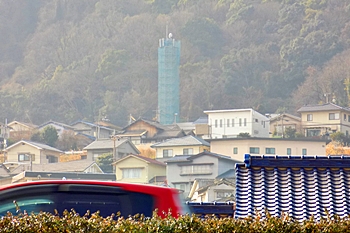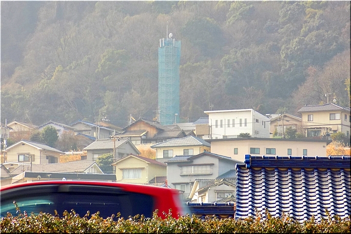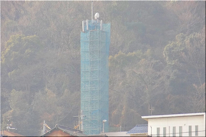西方の山側に眼を向けますと、工事用シートに覆われた何か塔のような構築物が…んっ!?″。まで有りませんでしたけど、何なんでしょうねぇ〜