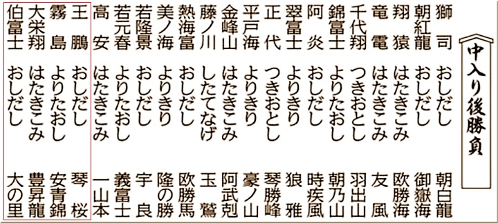 豊昇龍は前日に投げを打った際に額を土俵に打ち付け、流血しながら取り直しの末に伯乃富士を退けた。「おでこ大丈夫ですか」と声をかけられ「大丈夫です」と応じたという。「モンゴルに行きましたという話もありました。実は子どもの時に会ったことがあって、そのことも覚えていた」と感慨を口にした。