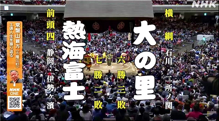 八角理事長は大の里について「最後に勝たなきゃっていうので、肩に力が入った。立ち合い全然当たれてなかった。愛子さまに『土俵が狭く感じる』と聞かれ、立ち合いが大事なんですよって言った直後だった。立ち合いがダメ。伯乃富士の立ち合いが最高だった」と言及した。横綱大関の総崩れを「重圧があったのでは」と推し量り「下の者が張り切っていたのでは」と続けた。