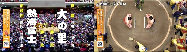 大の里は、和製横綱では貴乃花以来の天覧相撲白星が懸かるも惨敗。土俵下に押し出され、先場所で途中休場に追い込まれた左肩を気にするしぐさを見せた。相撲内容、左肩の状態、天覧相撲への意識などへの質問には「切り替えてしっかり集中して頑張ります」「また明日、しっかり頑張ります」と繰り返した。