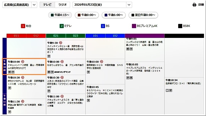 初回放送日 NHK総合テレビジョン1月23日(金)午後10:00