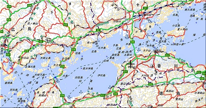 瀬戸内海には、数多くの島々が存在しておりまして、これらの島々は、それぞれ、瀬戸内に面します山口県・広島県・岡山県・愛媛県・香川県に所属しますけど、各県との境界は実に複雑に入り組んでおりまして、不思議な想いを生じてしまいます。