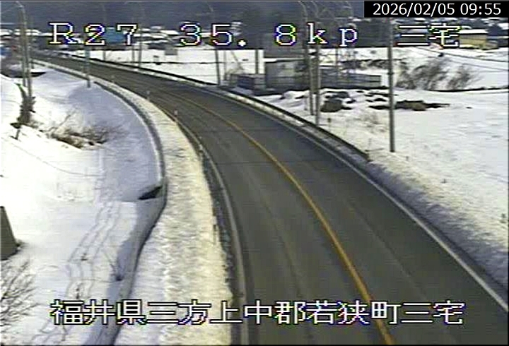 1/30(金)の積雪は、既に溶けているのかも…と、若狭町の国道27号線に設置のライブカメラを覗いてみますと、多少溶けてはいますようですけど、まだまだ日々の雪かきは欠かせませんのかも分かりませんねぇ〜