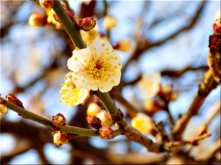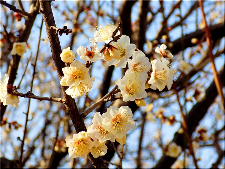 そして、昨日でしたか…ここ数日、日中は大変温かくて、午前中にウォーキングに出掛けますと多少の暑さも感じますけど、畑の片隅の梅の木に眼を向けましたら梅の花が開花です。なら、蝋梅の花も開花していますのでしょうけど、昨日は、とりあえず梅の花をパチリです(^.-)☆