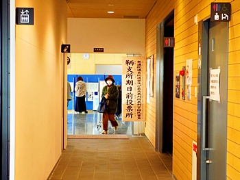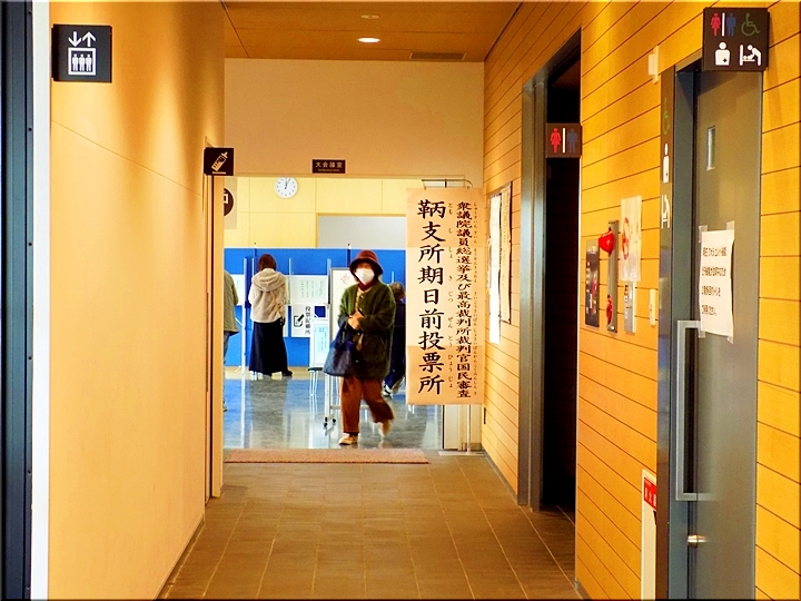 支所内の投票所へと向かいますと、いゃいゃ、ここにも6〜7名の方々が…これまた珍しいですから、もぅビックリ。