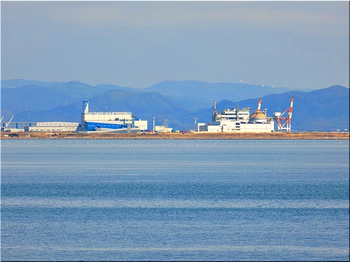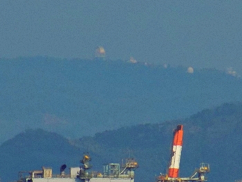 箕島工業団地・JFE方向に眼を向けますと、そのズッと後方方向に霞んで見えますけど竹林寺天文台≠ェ…