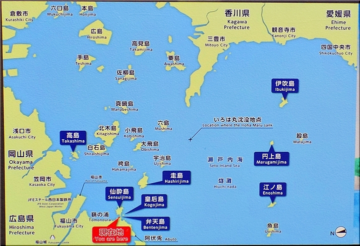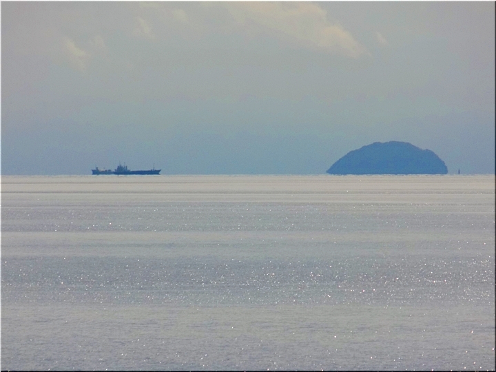 妙性山墓地からの直線距離では、住宅地・工場・山間部の上空を結びますけど、鞆支所からの直線距離では、一部、海上ですから、若干空気がキレイで、その為に、鮮明に見えますのかも…