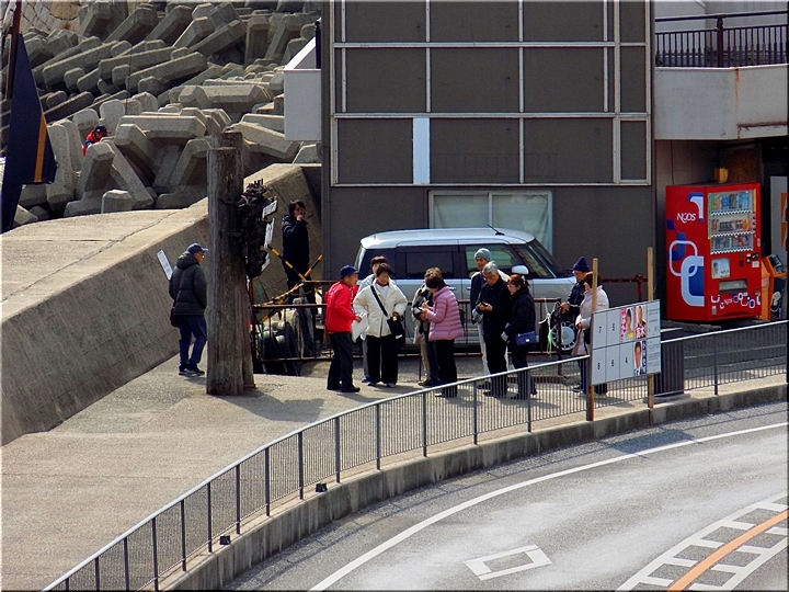 そぅしていますと、渡船乗り場付近に10数名の皆様が…今から仙酔島に渡られます観光客の皆様かも…こんな季節にも、鞆を訪れます方々はおられますようですネ(^.-)☆