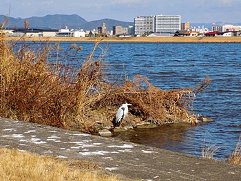 小水呑橋を過ぎました少し上流辺りの護岸には、アオサギ君がボンヤリと佇んでおりました。