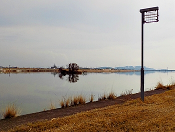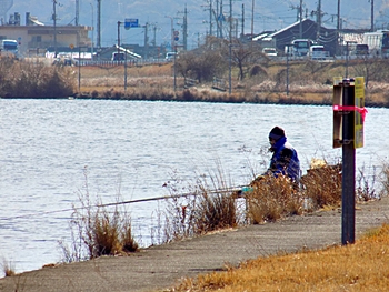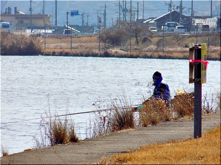 穏やかそうに感じます天候ですけど、風がありますから、時折り冷たさも…小水呑橋〜水呑大橋間には、さすがに釣り人はおられないだろう…と思いましたら、お一人釣り人が(^-^)