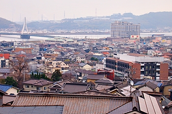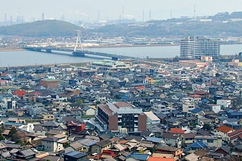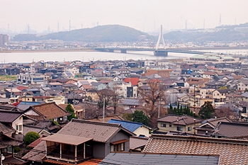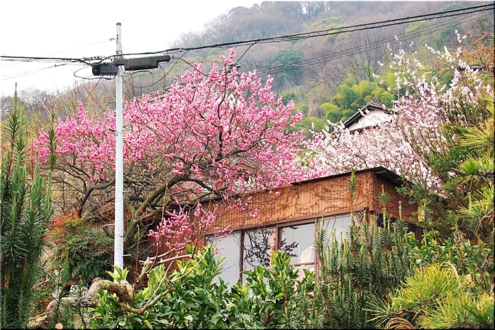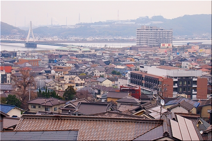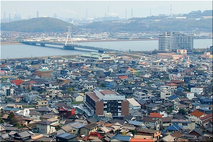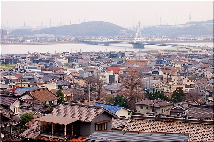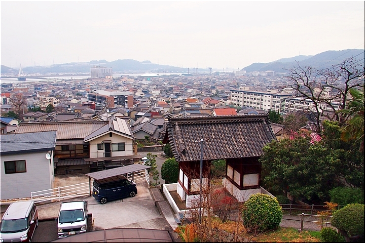 ご先祖様に手を合わせ、いつものように眼下を眺望です。曇天に加えて春霞ですから眺望は今一でありましたが、それはそれでイィ景観ではあります(^-^)