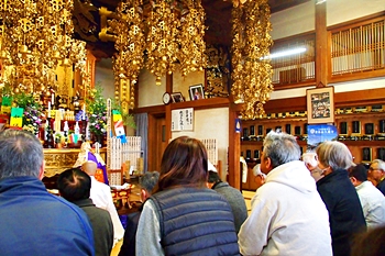 まぁ近年は(コロナ以降は)、参詣者も年々減少傾向にありまして、片隅で無くても中央辺りも空いていますけど、信心深さに欠けますから、中央部にはとても行けません(^-^;