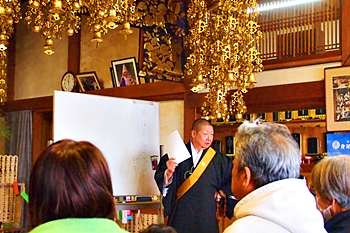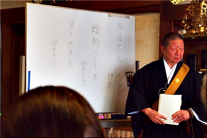 法要後には、難波上人の法話と続きます。今回のお話しの内容は、『妙法尼御前御返事』『臨終の事を習うて 後に他事を習ふべし』でありました。