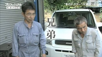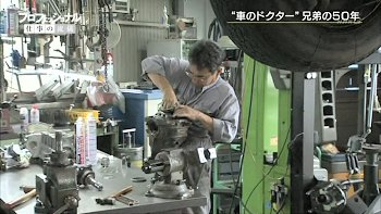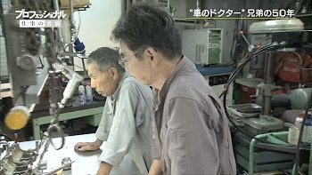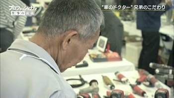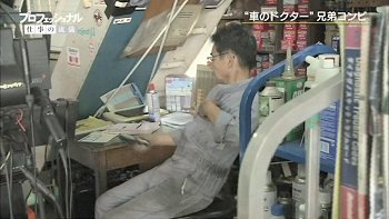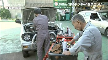 道具を使い、あらゆる車の故障に立ち向かうのが、弟・博久の役割。一方、兄・明は、月に13冊も専門誌を熟読し、道具の展示会にも足しげく通う。いわばブレーン役だ。