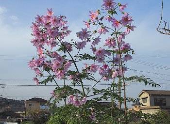 挿入の画像は、我が家の畑の片隅に植えております皇帝ダリア。