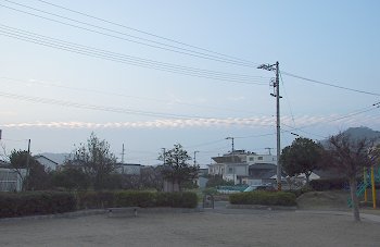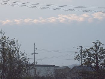 そして、その際に南方に眼を向けますと、西北から東南方向に長く真っ直ぐな毛糸を撚り合わせたような雲がでておりました。