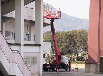 それでは、洗車の後片付けを…と取り掛かろうとしますと、クレーン車の方向から木槌の快い音が。眼を向けますと上棟工事も随分進行です(^.-)☆