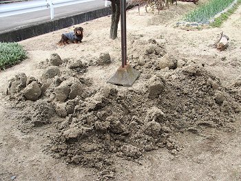 で、仕方なく、我が家と隣接部分の2/3は、バケツに土砂を入れ、その都度、農地部分に運び出しましたけど、結構な量ですからもぅギブアップ。