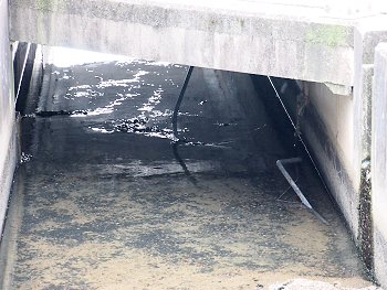 …と、そんな事を考えながら用水路を覗き込んでおりますと、う〜ん、悪い人がおられます。どなたか、水道管のようなモノを橋下に廃棄されておられます。