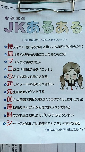 「女子高生」⇒「JK」なんですねぇ〜納得です。「なんでも略して言いたがる」の項目に該当ですねぇ(^-^)//"