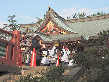 毎年、盈進高校野球部の皆様と時間帯が前後しますのですけど、私たちが祈願を終え本殿から出て来ますと、盈進高校の女子生徒の皆様が…