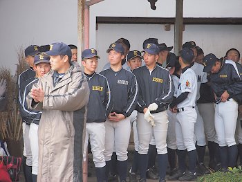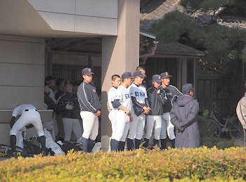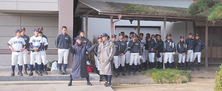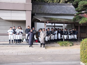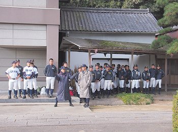 降りて来ますと、うん、うん、盈進高校野球部の皆様が勢揃い。