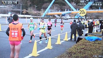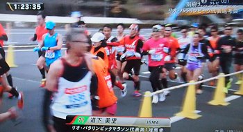 そぅそぅ、このレースは、9月のリオデジャネイロ・パラリンピックの視覚障害者マラソン代表の最終選考会も兼ねておりまして、中継では伴走者の途中交代の場面も中継しておりました。