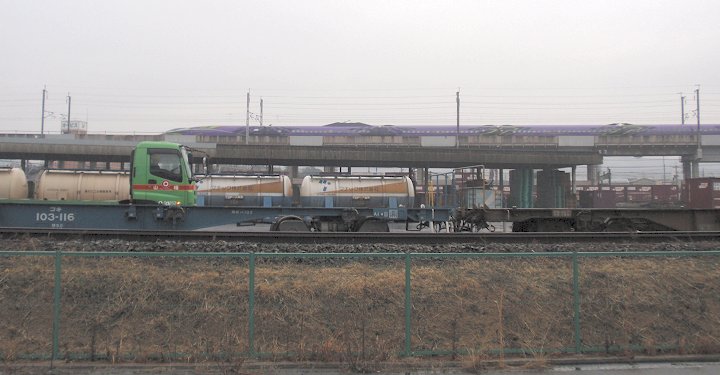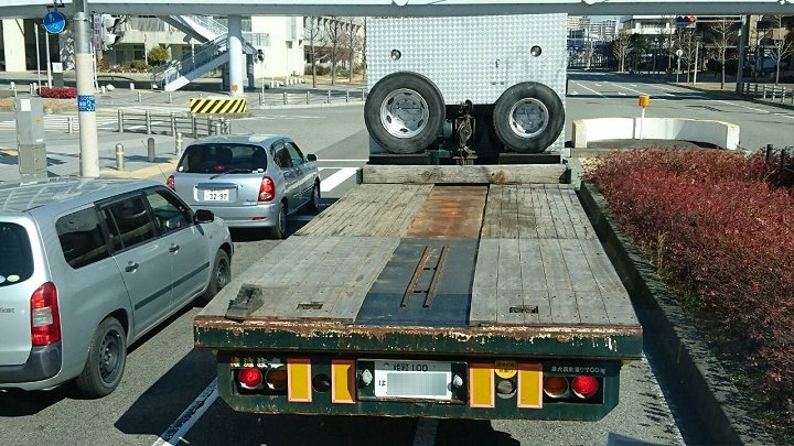 これは信号待ちで見掛けました一コマなんですけど、う〜ん、車輪の歯止めが、荷台の上で微妙な位置に(^.-)☆