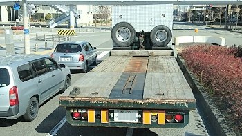 車輪の歯止めが、荷台の上で微妙な位置に(^.-)☆