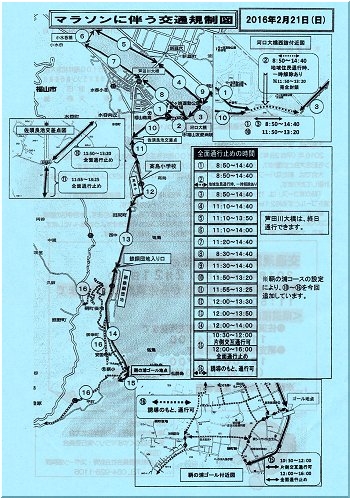 今日、町内会の回覧でマラソン大会当日の交通規制のご案内が廻っておりました(^.-)☆
