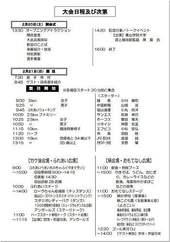 大会日程・次第によりますと、当日は、宗茂・宗孟ご兄弟、アンガールズもご来福のようですから、ハーフマラソンの選手の皆様を見送りました後は、竹ヶ端会場ふれあい広場でステージトークを楽しみますのもイィかも分かりませんねぇ〜