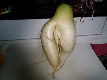 今まで、こんな変形大根の収穫はありませんで、我が家では初めて(^_^)v