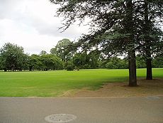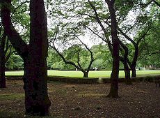 また、大正年間には西洋庭園が9ホールのゴルフコースとしても利用され、新宿植物御苑時代の休憩所(旧御休所)が模様替えされてクラブハウスもかねるようになりました。昭和10年代になると戦争の影が御苑を覆い始め、昭和20年5月の空襲では台湾閣(旧御涼亭)と御休所を残して、ほぼ全焼という大きな打撃を受けました。