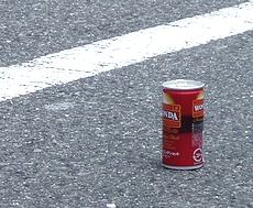 鯉のぼりと、駐車場の真ん中にポツンと置かれました缶コーヒーの空き缶です。