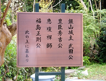 墓参を終えますと2度目の訪問のGONsanは、“銀山城主・武田公”“豊臣秀吉公”“安国寺恵瓊禅師”“福島正則公”等のお墓参りとなりました。
