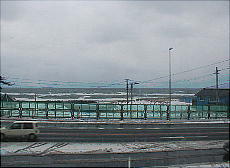 (左)(中)酒田〜秋田間の羽越線列車内から日本海側の景観を撮りましたものです (右)秋田駅ビル 近隣のからくり時計です