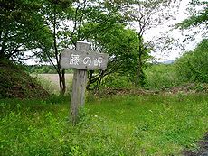 (左)秋田御前廟の表示板が… (右)秋田御前廟です…と言いましても“秋田御前”が何者かは…