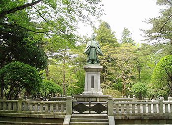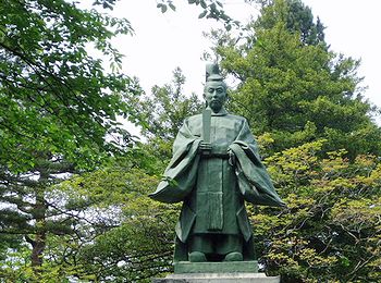 (左)(右)秋田藩初代・佐竹義宣(よしのぶ)公の銅像です(^.-)☆