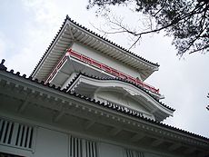 この御隅櫓はもと城内に八ヶ所あった櫓の一つで本丸の北西隅の一番高い台地(標高約四十五メートル)に位置しており、物見や武器の貯蔵庫などに使われていたものです。
