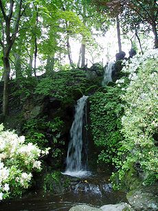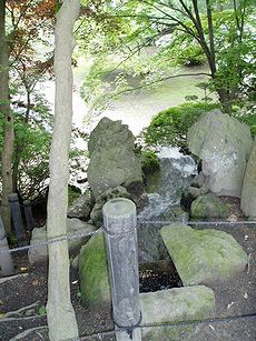(左)久保田城御隅櫓の案内板です (中)御隅櫓 (右)人工滝の源流がココでした(^.-)☆
