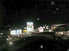 宿泊ホテルの窓から周辺の景観を (中)(右)同じ場所を朝撮りましたものです