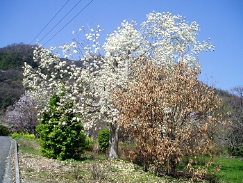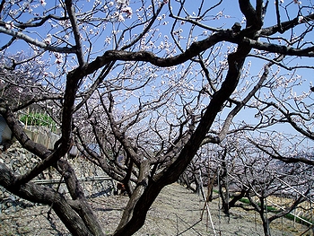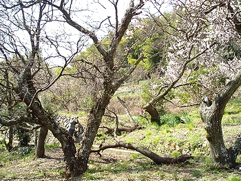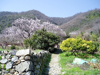 そして、バス通りを渡り山側の杏畑にと向かいますと、「杏まつり」の翌日ですから、さすがに人影は見えません(^.-)☆