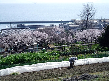 (左)(右)杏畑から穏やかな瀬戸内に眼を向けますと、ノンビリとした気持ちになってしまいます(^.-)☆